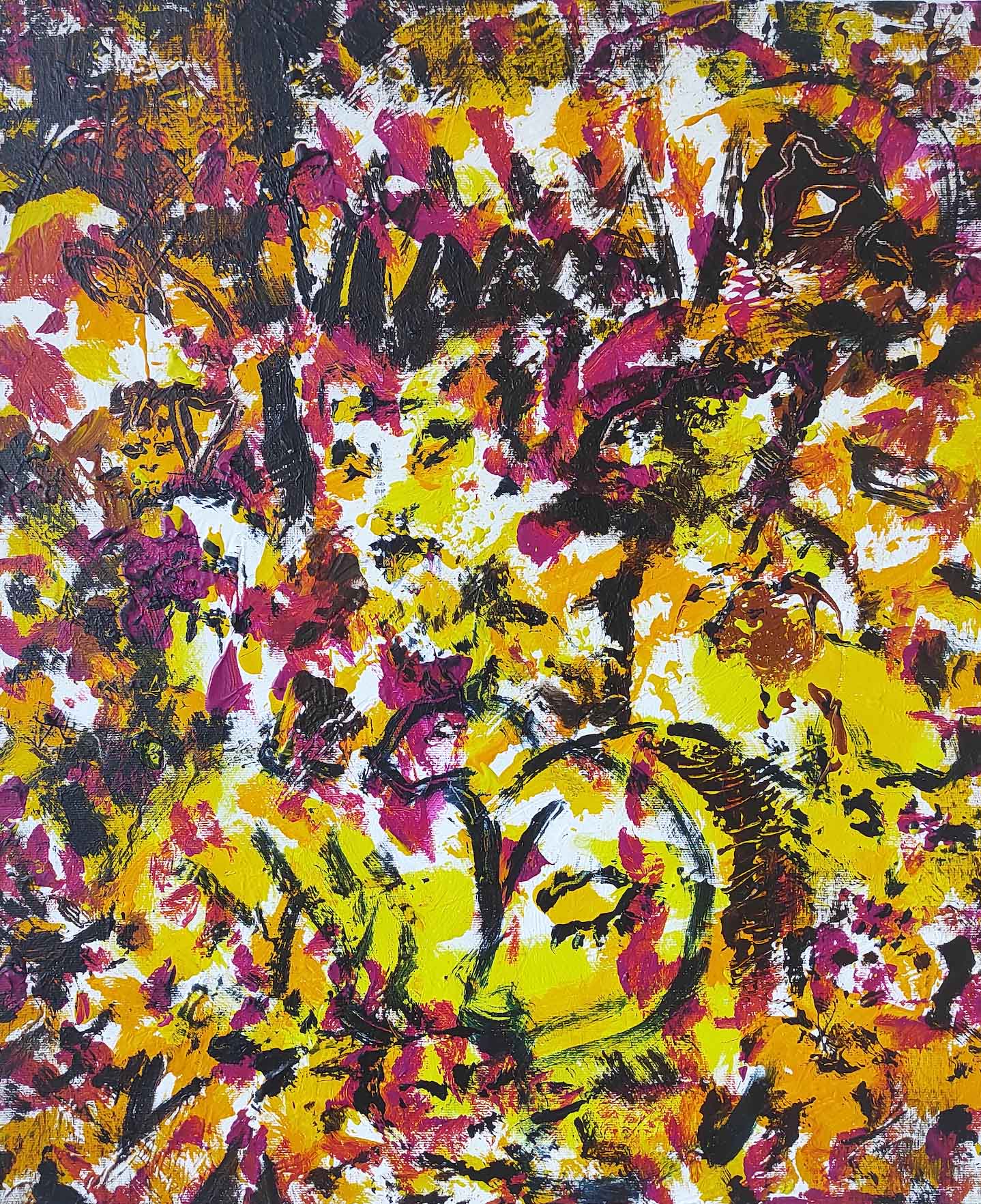 I wanted to be the woman who speaks, through her paintings, about taboos like death, God, and the transitions in between—the in-between that can only be felt. When I paint, I lose myself in it.