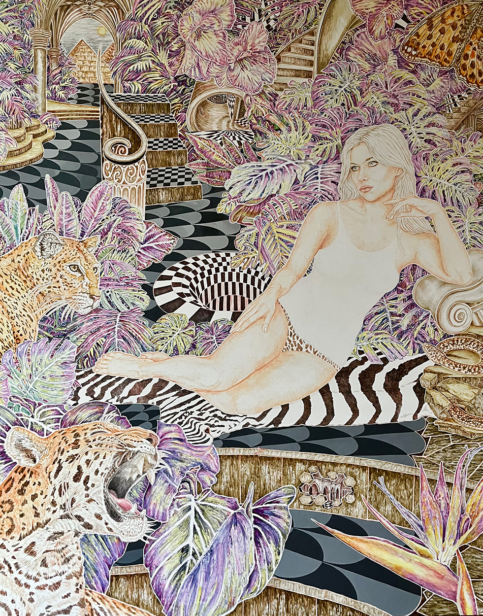 With her preferred media – acrylic on canvas – she creates unique, spacy, pop-art inspired artworks, with a hint of mythology and much symbolism.